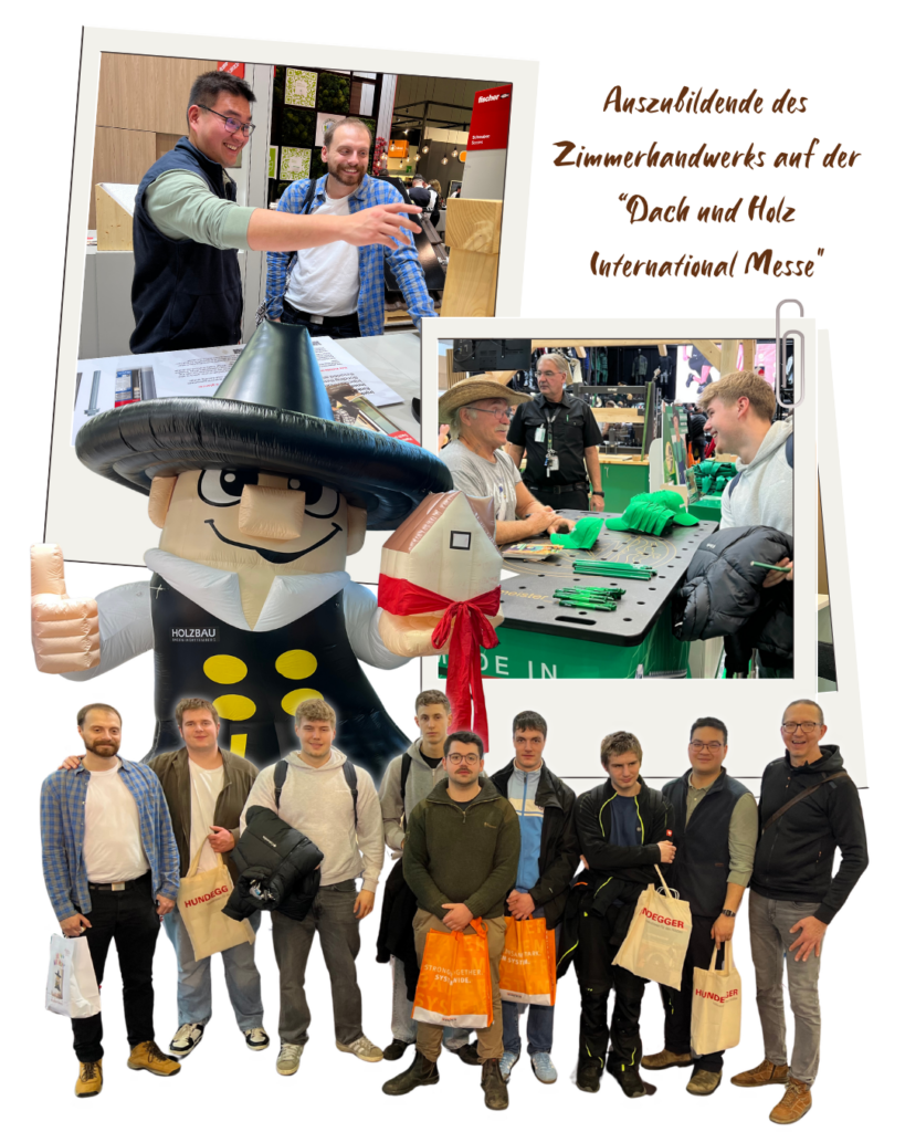 - Auszubildende des Zimmerhandwerks auf der „Dach und Holz International Messe“Auszubildende des Zimmerhandwerks (ZI23/ZI24) besuchten am 25.02.26 die „Dach und Holz International Messe“ , die Messe für alle Gewerke am… Auszubildende des Zimmerhandwerks auf der „Dach und Holz International Messe“ weiterlesen
