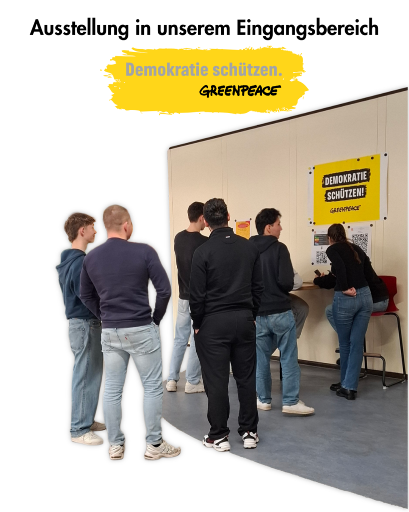 - Ausstellung „Demokratie schützen“ an der WGS HildesheimIm Zeitraum vom 09.03. bis 20.03.2026 ist die Ausstellung „Demokratie schützen“ von Greenpeace Hildesheim in der Pausenhalle der Walter-Gropius-Schule zu sehen. Die Ausstellung besteht… Ausstellung „Demokratie schützen“ an der WGS Hildesheim weiterlesen