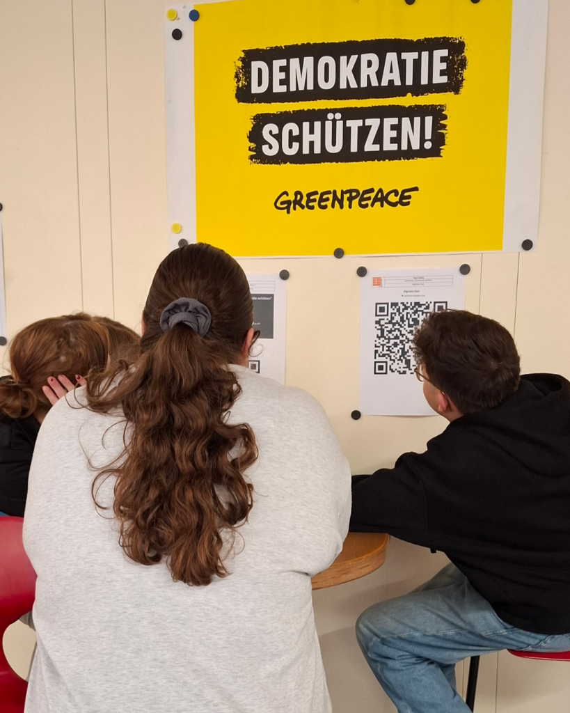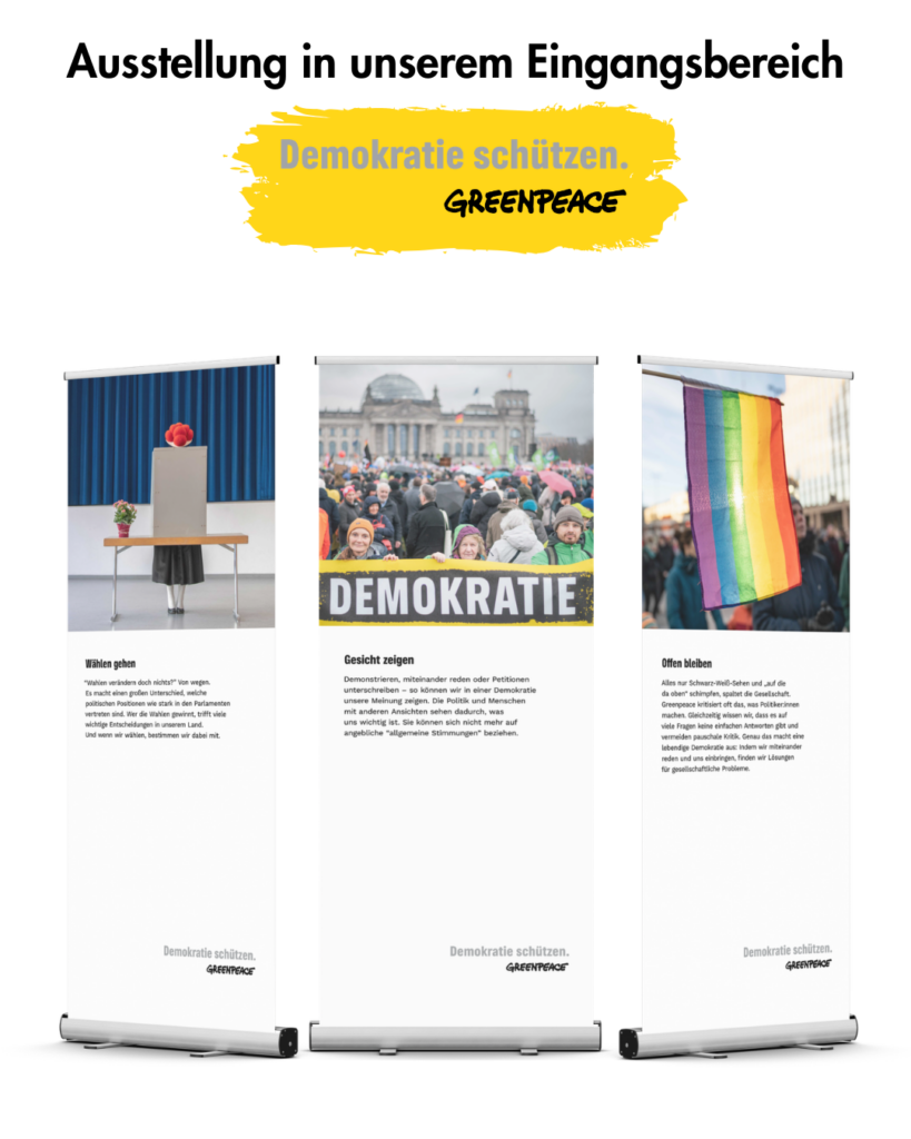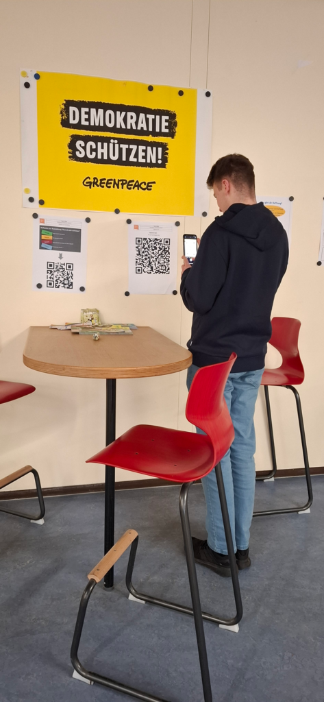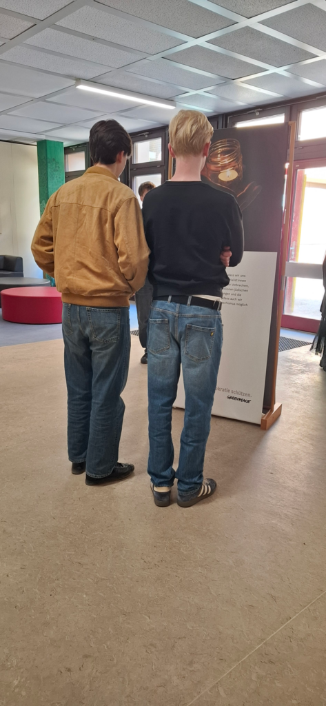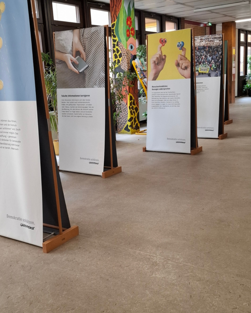 Im Zeitraum vom 09.03. bis 20.03.2026 ist die Ausstellung „Demokratie schützen“ von Greenpeace Hildesheim in der Pausenhalle der Walter-Gropius-Schule zu sehen.