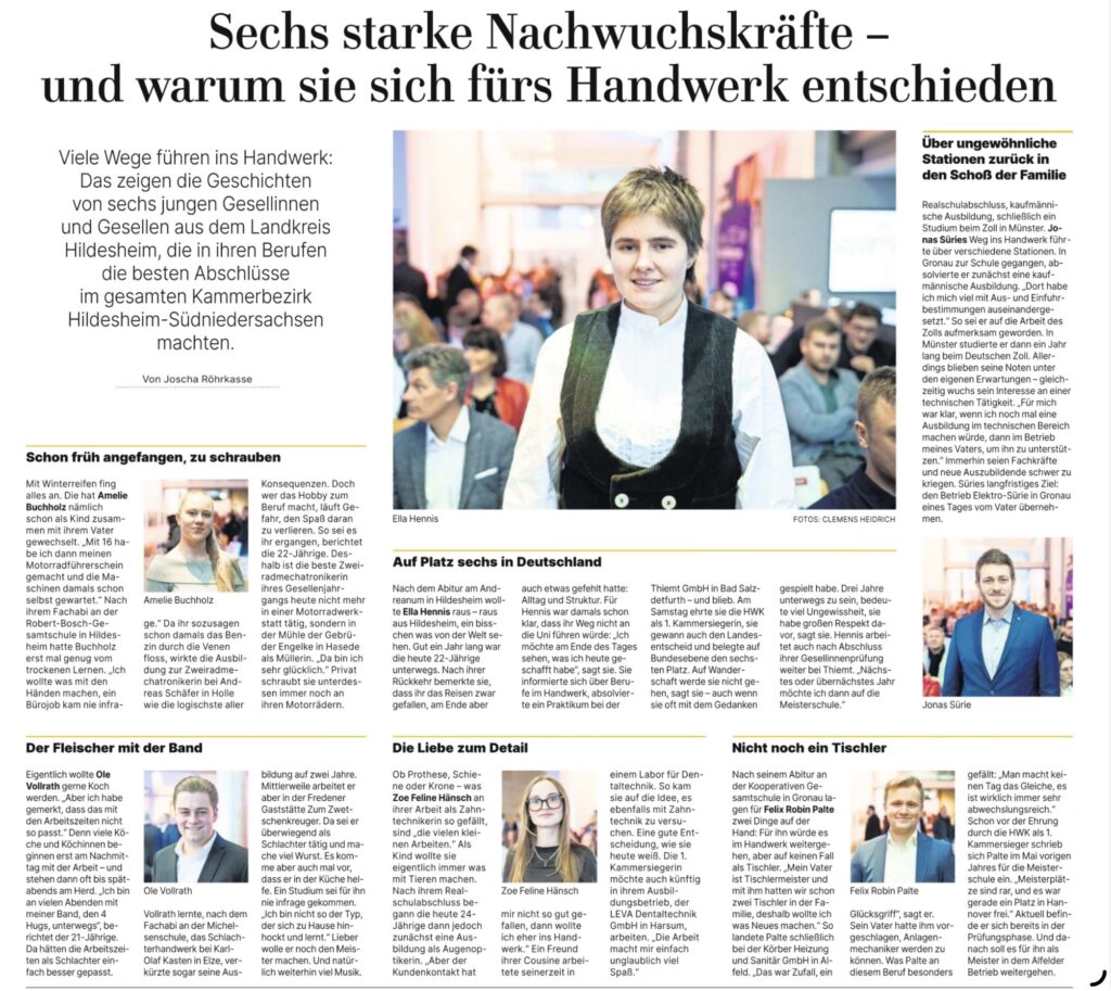 Auch unsere ehemalige Schülerin Ella Hennis wurde von der Handwerkskammer ausgezeichnet. Neben Kammersiegerin ist sie außerdem Landessiegerin und belegte im Bundesentscheid Platz 6 🏆 Herzlichen Glückwunsch auch von unserer Seite 🎉